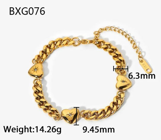 18k Gold Plated 3 Hearts Cuban Bracelet