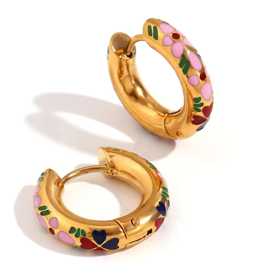18K Gold Plate Oval Rainbow Pendant Earrings