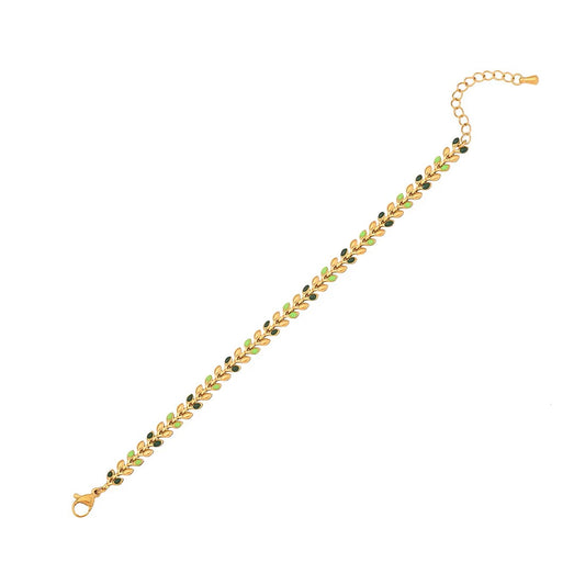 18K Gold Plated Oil-Drip Olive Leaf Bracelet
