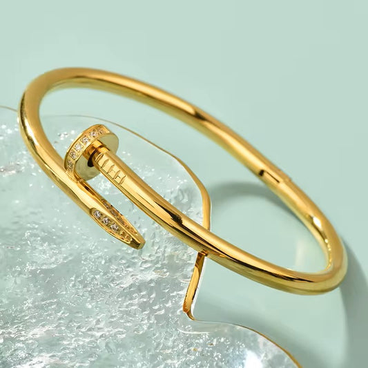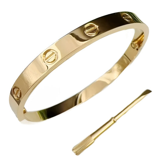 18K Gold Plated Wire Braided Heart Charm Bangle (Adjustable)