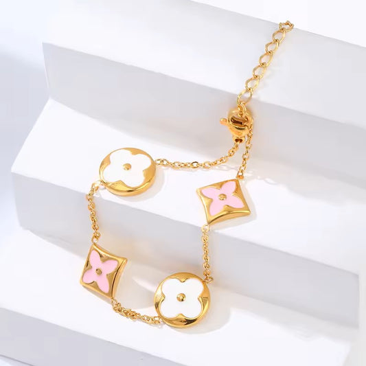 18K Gold Plated Oil Drop Clover Pendant Bracelet