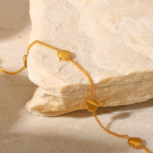 18k Gold Plated Chunky Heart Charm Cuban Bracelet