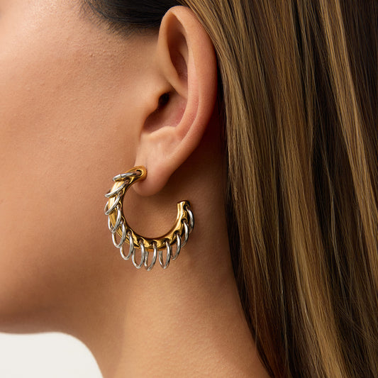 18K Gold Plated Two-Tone Tassel Chain Earring