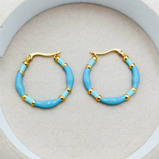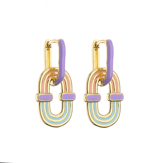 18K Gold Plate Oval Rainbow Pendant Earrings