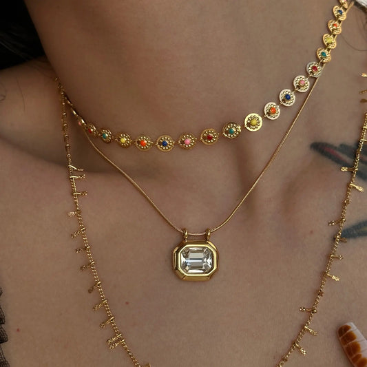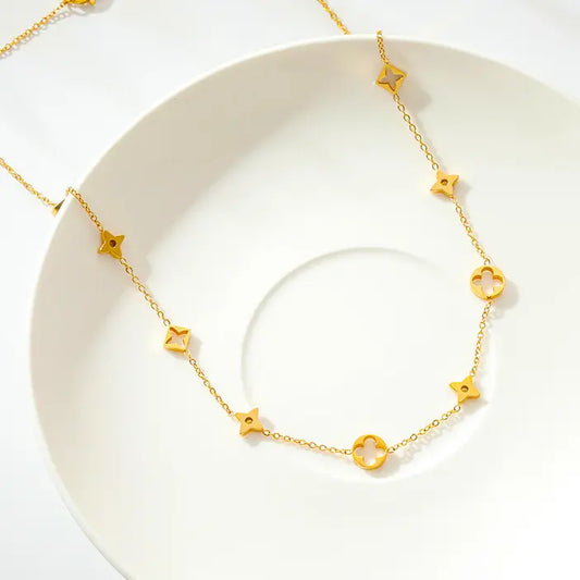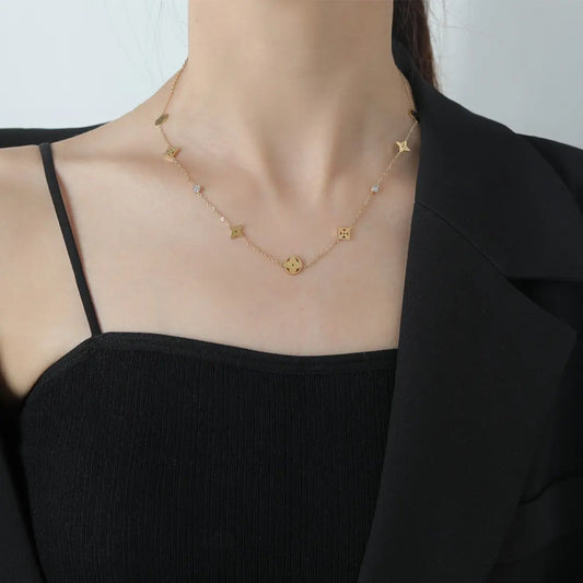 18K Gold Plated Snake Chain Flower Pendant Necklace