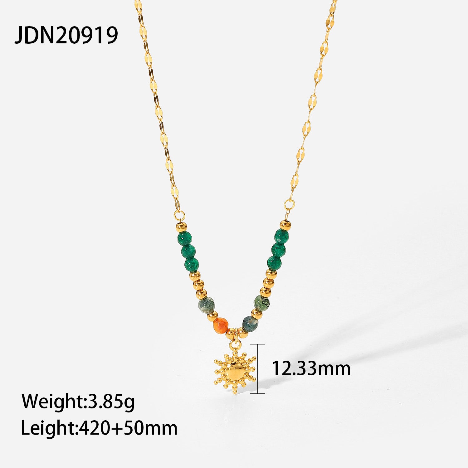 18K Gold Plated Natural Stone Bead Sun Necklace